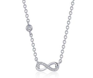 Simple yet charming. This adjustable and stackable infinity necklace features Lafonn's signature Lassaire simulated diamonds in sterling silver bonded with platinum.