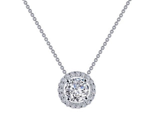 Timeless elegance. This halo necklace features Lafonn's signature Lassaire round simulated diamonds in sterling silver bonded with platinum.