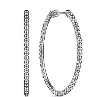925 Sterling Silver 50MM Bujukan Beaded Large Hoop Earrings