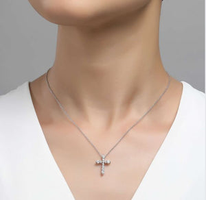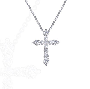 A timeless classics. This cross pendant is set with Lafonn's signature Lassaire simulated diamonds in sterling silver bonded with platinum. The pendant comes on an adjustable 18" chain.