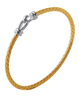 Sterling Silver 3mm Mesh Bangle, 2 Tone, 18K Yellow Gold and Rhodium Finish s1q00r97zy-