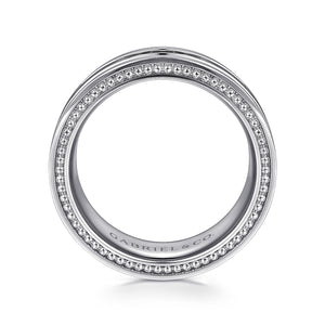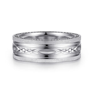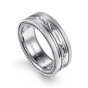 14K White Gold 8mm - Carved Men's Wedding Band in Satin Finish