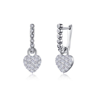 Delicate and sweet. These charming designer huggie earrings feature two dangling puffy hearts set with Lafonn's signature Lassaire clear simulated diamonds. These earrings are set in sterling silver bonded with platinum. A must for any girl that loves hearts!