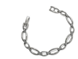 Elongated and elegant links are punctuated by stations of Swarovski for a fine jewelry feel. Adjustable by a full inch.