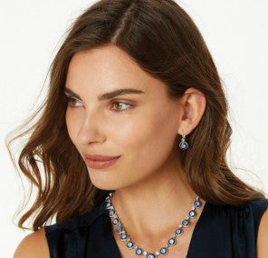 Intensely blue hand-painted enamel encircles twilight-hued and diamond-like fine quality crystals for starry effect on these leverback earrings.