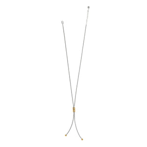 Elevate your style with the Interlok Collection's Silver-Gold Lariat Necklace. This elegant piece features a secure lobster claw closure and is adjustable from 22" to 24" in length. Highlighted by a stationary pendant with a 4 1/2" drop, the two-tone Interlok twist design adds a touch of sophistication and charm to any outfit.