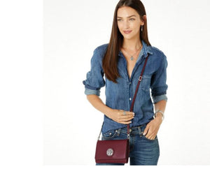 Clean, simple lines are the sleek counterpoint to a high polish Ferrara medallion showcased against handlaced details. Inside, organization reigns supreme, with 6 card slots. Leave your wallet at home. With its detachable straps, carry as a clutch or crossbody.
