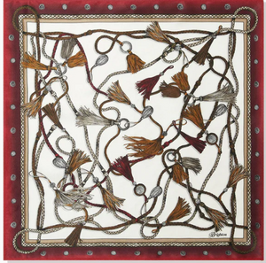 This tassel-patterned custom-designed handbag scarf is the perfect accent to your must-have bags of the season. Now one of our most beloved designers from Brighton, Carmine, Has left her gorgeous stamp of Ferrara on a scarf. Where alone or wrap your handbag in style and luxury.