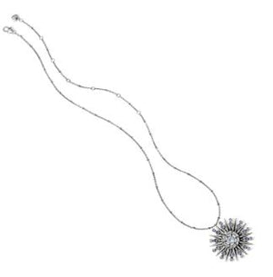 Radiating from a center Swarovski crystal, icy rays of sparkle in twilight hues emanate outward for frosty effect.