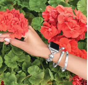 Designed to fit your Apple Watch®, this decorative large, polished “bold” studs from this collection create a smart watch band that really gives the “jewelry” look - this is a style that looks just as much “bracelet” as it does watch band. It offers three fold-over clasp extenders for adjustability, and fits 38 mm case size and larger.
