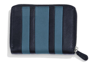 Stripes lend a sporty touch to this luxe leather wallet. Its blue hues remind us of the Greek island of Santorini.