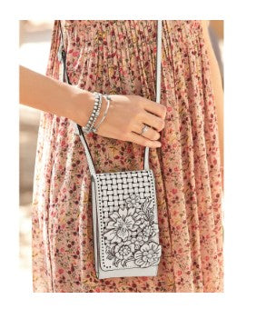 Inspired by a garden trellis, every artisan detail is attended to on this ultra-pretty and practical phone organizer – from the hand sketch to the printing of art on leather. The flowers are molded with a heat press.