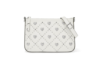 Optic White, cross body handbag from Brighton. Features the silver nail heads and hearts, brand new from the Braveheart collection. Top closure is ziptop for added security. All Italian Leather , adjustable straps includes a key holder. Super cute for the woman that loves hearts. Perfect summer bag and gift for mom for Mother's Day