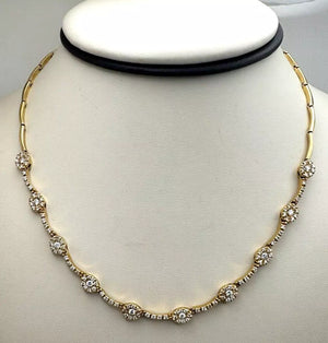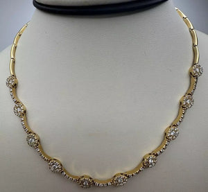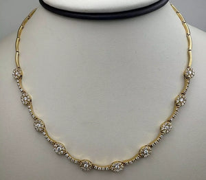 PERFECT GIFT π This stunning necklace is made of 14k yellow gold and features a diamond link chain with a total weight of 18 grams. The necklace also boasts 2.19 carats of diamonds, making it a true statement piece. Its elegant style and exquisite design make it perfect for any occasion, and the 17-inch length ensures it will sit comfortably on the neckline. This necklace is a must-have for any fine jewelry collection and is sure to turn heads wherever you go.