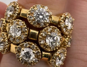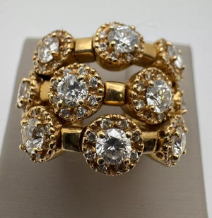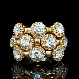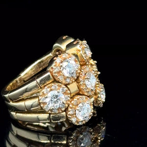 This vintage estate ring from Sonia B. is a stunning piece of jewelry that will surely catch anyone's attention. Crafted from 14k yellow gold, this ring features a beautiful flower shape adorned with sparkling diamonds. The ring is a size 5 and weighs 1.80ct, making it a perfect addition to any jewelry collection.