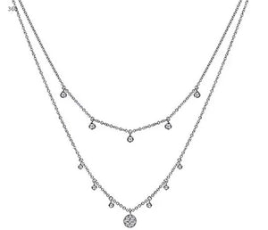 Effortlessly conquer the layered look when you choose this 0.22ct diamond fashion necklace. A dozen round diamond charms are suspended from double dainty 14k white gold chains. Finished with an adjustable claw closure so you can customize it to work with any neckline.