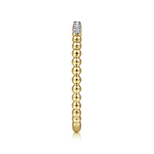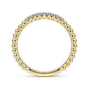 This 14K Yellow Gold Bujukan Bead and Diamond Stackable Ring blends classic elegance with modern sophistication. Featuring a delicate row of polished Bujukan beads paired with sparkling diamonds, this ring offers a stunning contrast of texture and brilliance. Crafted in warm yellow gold, it’s perfect for stacking or wearing alone as a refined statement piece. A versatile and timeless addition to any jewelry collection.
