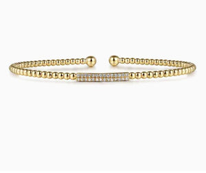 Elevate your jewelry collection with the exquisite craftsmanship of Gabriel's 14K Yellow Gold Bujukan Bead Bangle, adorned with dazzling diamonds. Perfectly blending sophistication with contemporary allure, this bangle is a testament to Gabriel's commitment to luxury and elegance.