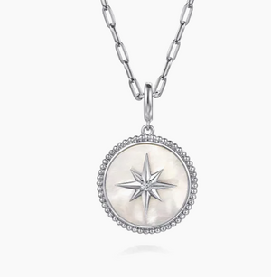 925 BUUKAN WHITE SAPPHIRE & MOTHER OF PEARL ROUND STARBURST MEDALLION PENDANT PT6638SVJMC
