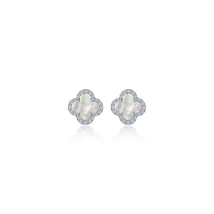 Timeless elegance. Each of these charming halo stud earrings features a cultured mother-of-pearl good-luck symbol surrounded by Lafonn Lassaire simulated diamonds in sterling silver bonded with platinum.