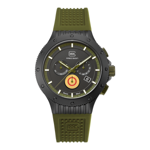 Glock firearms are renowned for their exceptional quality and precision, characterized by robust construction, reliability, and outstanding performance. This same commitment to excellence extends to Glock timepieces, ensuring they are crafted with meticulous attention to detail, durability, and precision. The result is a collection of watches that embody the same high standards, reliability, and craftsmanship that have made Glock firearms a trusted choice worldwide. Introducing the Glock watch with a Ø 44 mm case and an RTF strap with a black clasp. It features Swiss Super-LumiNova® technology, ensuring clear visibility of both hands and indices in any lighting condition.