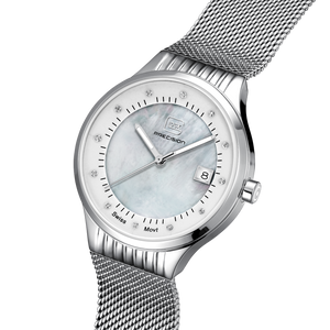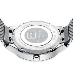 Glock firearms are renowned for their exceptional quality and precision, characterized by robust construction, reliability, and outstanding performance. This same commitment to excellence extends to Glock timepieces, ensuring they are crafted with meticulous attention to detail, durability, and precision. The result is a collection of watches that embody the same high standards, reliability, and craftsmanship that have made Glock firearms a trusted choice worldwide. The Glock watch has a case size of approximately Ø 35 mm and is paired with a strap featuring a silver-tone clasp. It features Swiss Super-LumiNova® technology, ensuring clear visibility of the hands in low-light conditions. The watch also boasts a mother-of-pearl dial, adding a stylish and elegant touch to its design.