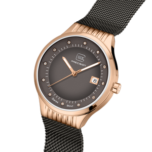 Glock firearms are renowned for their exceptional quality and precision, characterized by robust construction, reliability, and outstanding performance. This same commitment to excellence extends to Glock timepieces, ensuring they are crafted with meticulous attention to detail, durability, and precision. The result is a collection of watches that embody the same high standards, reliability, and craftsmanship that have made Glock firearms a trusted choice worldwide. The Glock watch features a case size of approximately Ø 35 mm and is paired with a strap featuring a gunmetal clasp. It includes Swiss Super-LumiNova® technology, ensuring excellent visibility of the hands in various lighting conditions.