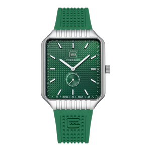 Glock firearms are renowned for their exceptional quality and precision, characterized by robust construction, reliability, and outstanding performance. This same commitment to excellence extends to Glock timepieces, ensuring they are crafted with meticulous attention to detail, durability, and precision. The result is a collection of watches that embody the same high standards, reliability, and craftsmanship that have made Glock firearms a trusted choice worldwide. The Glock watch features a case size of approximately 38 x 48 mm, complemented by an RTF strap with a silver-tone clasp. It is equipped with Swiss Super-LumiNova® technology, which illuminates the hands and indices for optimal visibility in low-light conditions.