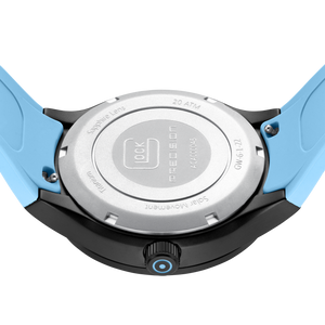 Glock firearms are renowned for their exceptional quality and precision, characterized by robust construction, reliability, and outstanding performance. This same commitment to excellence extends to Glock timepieces, ensuring they are crafted with meticulous attention to detail, durability, and precision. The result is a collection of watches that embody the same high standards, reliability, and craftsmanship that have made Glock firearms a trusted choice worldwide. The Glock watch has a case size of approximately Ø 40 mm and features a logo strap with a black clasp. Its standout feature is the Swiss Super-LumiNova® technology, which ensures that the hands and indices are highly visible in low-light conditions.