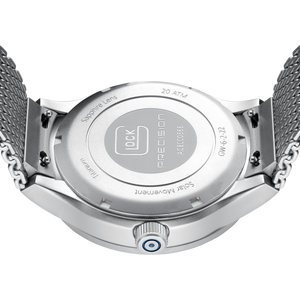 Glock firearms are renowned for their exceptional quality and precision, characterized by robust construction, reliability, and outstanding performance. This same commitment to excellence extends to Glock timepieces, ensuring they are crafted with meticulous attention to detail, durability, and precision. The result is a collection of watches that embody the same high standards, reliability, and craftsmanship that have made Glock firearms a trusted choice worldwide. The Glock watch features a case size of approximately Ø 40 mm and a strap with a silver-tone clasp. It boasts Swiss Super-LumiNova® technology, ensuring that the hands and indices are brightly illuminated for excellent visibility in low-light conditions.