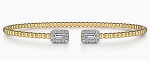 14K Yellow Gold Bujukan Open Cuff Bracelet with Diamond Baguettes