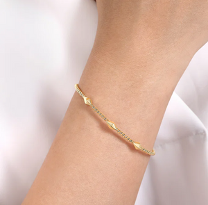 Indulge in the timeless allure of 14k white gold, meticulously shaped into a sleek and graceful bangle. Whether worn alone as a statement piece or layered for a personalized touch, this bangle promises to elevate every ensemble with effortless charm.