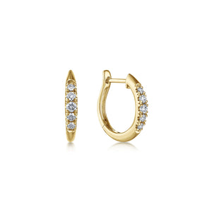 Elegant and timeless, these 14K yellow gold huggie earrings offer a refined touch to any look. Featuring a sleek round design, each earring is adorned with a row of sparkling diamonds for added brilliance. With a diameter of 15mm, they hug the earlobe comfortably, making them perfect for everyday wear or special occasions. The secure hinged clasp ensures easy wear and peace of mind. These earrings are a classic choice that combines simplicity with sophistication, ideal for gifting or enhancing your own collection.