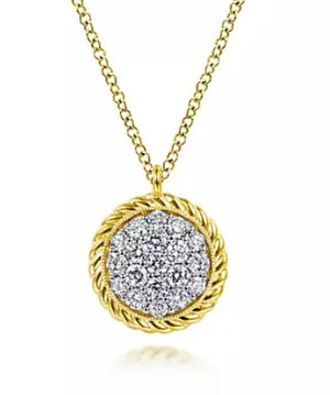 Exude timeless elegance in this Hampton collection earrings. Grounded by a slim 14K yellow gold, it features a circular earrings framed by a polished rope of twisted gold and delicate milgrain accents. At the center of the earring are 0.47ctw pavé diamonds that add everyday luxury to a simple silhouette.