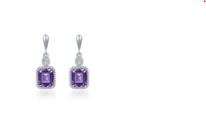 January - Garnet. Adorn yourself with Lafonn's birthstone jewelry. Each of these gorgeous earrings features an emerald-cut simulated garnet and a Lafonn's signature Lassaire simulated diamond. The earrings are in sterling silver bonded with platinum.