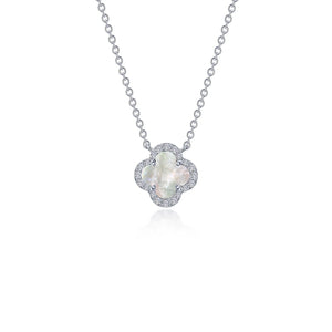 Timeless elegance. This charming adjustable halo necklace features a cultured freshwater mother-of-pearl good-luck symbol surrounded by Lafonn Lassaire simulated diamonds in sterling silver bonded with platinum.