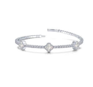 Brand New by Lafonn. Constructed with comfort and glamor in mind, this flexible station tennis bracelet is set in Lafonn's signature Lassaire simulated diamonds in sterling silver bonded with platinum. The three good-luck symbols, set with genuine cultured freshwater mother-of-pearl, add a sparkling charm to the bracelet.  Wear it alone or stack them for a beautiful, classic arm party. Secure lock on the back, lightweight, this will quickly become one of your favorite go to bracelets. Shipping starts approximately 3-22-24