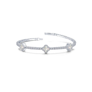 Constructed with comfort and glamor in mind, this flexible station tennis bracelet is set in Lafonn's signature Lassaire simulated diamonds in sterling silver bonded with platinum. The three good-luck symbols, set with simulated red agate, add a sparkling charm to the bracelet.