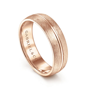 14K Rose Gold 6mm - Brushed Diamond Cut Men's Wedding Band