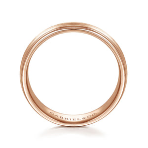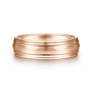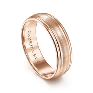14K Rose Gold 6mm - Carved Men's Wedding Band in Satin Finish