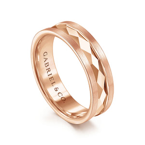 14K Rose Gold 6mm - Diamond Cut Men's Wedding Band in Satin Finish