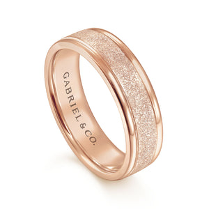 14K Rose Gold 6mm - Men's Wedding Band in Sand Blast Finish