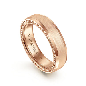 14K Rose Gold 6mm Mens Wedding Band in Satin Finish