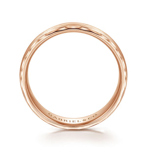 14K Rose Gold 6mm - Satin Finish Men's Wedding Band with Carved Edge