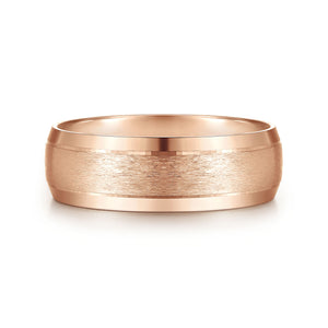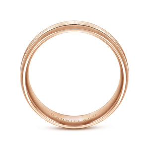 14K Rose Gold 7mm - Beveled Edge Men's Wedding Band in Horizontal Brush Finish