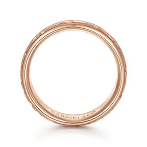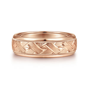 14K Rose Gold 7mm - Engraved Woven Men's Wedding Band in Satin Finish