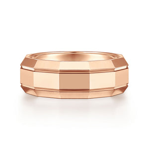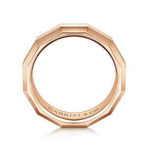 14K Rose Gold 8mm - Angular Men's Wedding Band in High Polished Finish