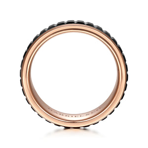14K Rose Gold-Black Ceramic 7mm - Two Tone Beveled Edge Men's Wedding Band
