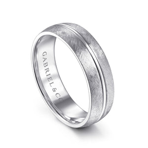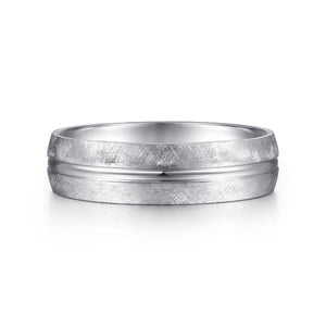 14K White Gold 6mm - Brushed Diamond Cut Men's Wedding Band