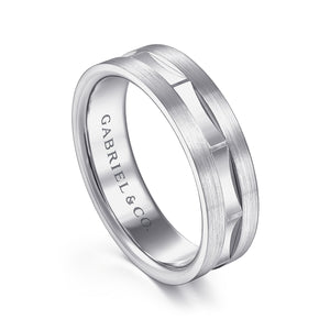 14K White Gold 6mm - Interwoven Men's Wedding Band in Brushed and Satin Finish